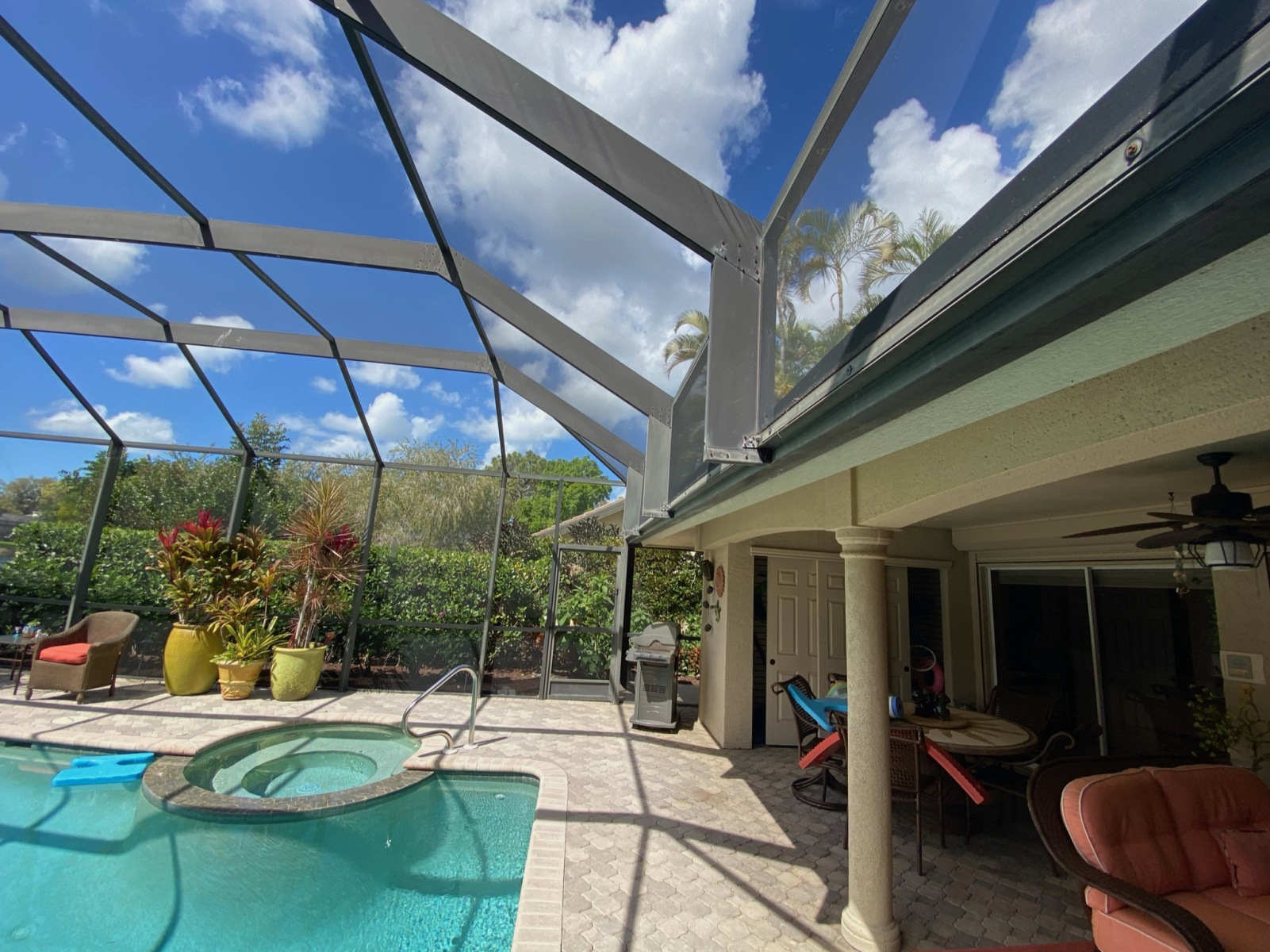 To ensure long-term protection and a clean modern finish, we replaced the entire pool cage with a new bronze aluminum enclosure featuring: