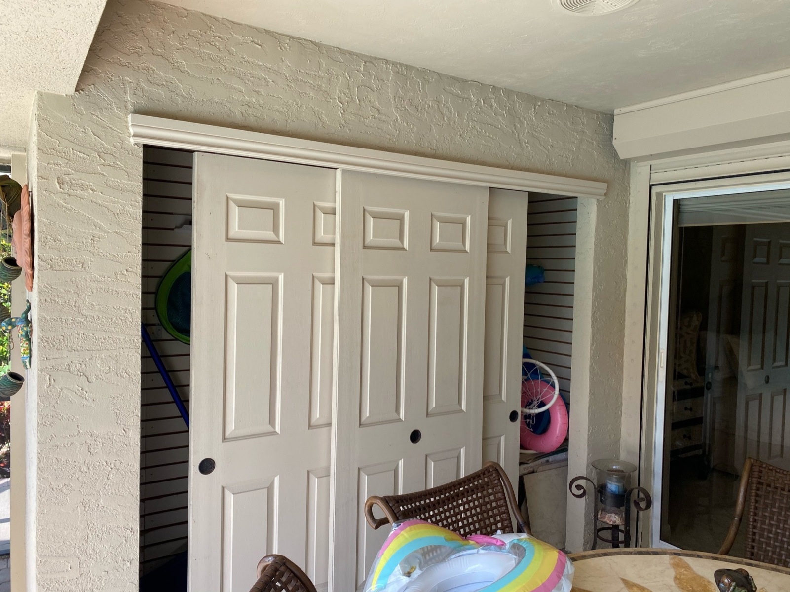The project wrapped up with a complete exterior repaint using Sherwin-Williams Super Paint, including walls, ceilings, and lanai surfaces. Inside, we upgraded baseboards, door casings, and trim in the living, dining, and foyer areas — freshly caulked, painted, and finished to perfection.